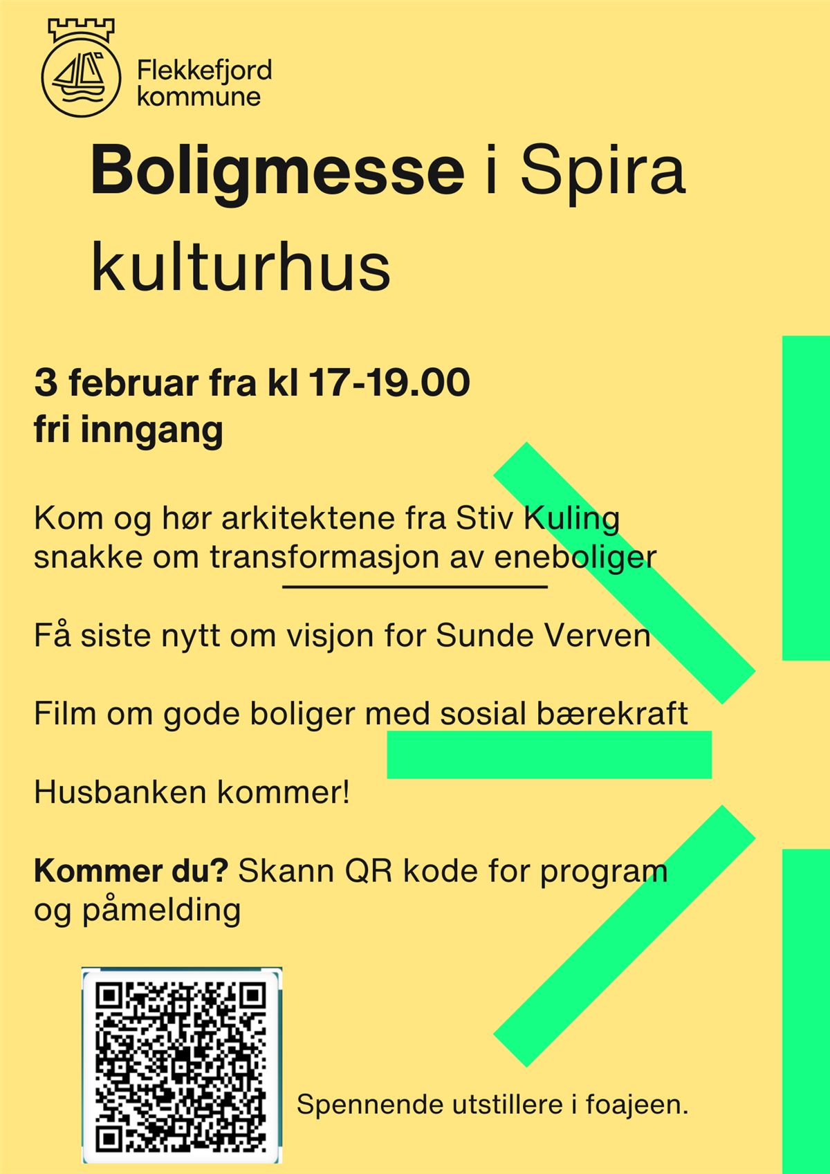 Skann QR-koden på bildet eller meld deg på via påmeldingsskjema for boligmesse på SPIRA.
