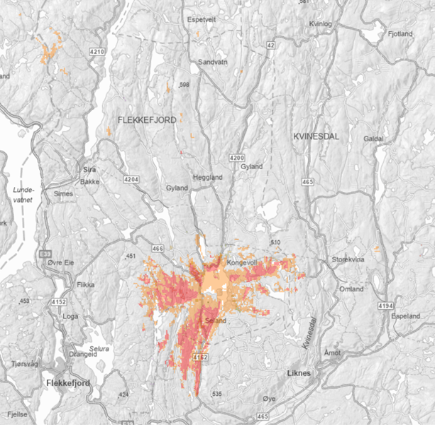 Telenor oppgraderer mobilnettet Telenor moderniserer mobilnettet slik at flere får tilgang til 5G og bedre kapasitet på 4G. Periodevis redusert kapasitetBasestasjonene oppgraderes, og i området basestasjonen dekker vil det under oppgraderingen være lavere kapasitet og i perioder ingen dekning. Dette gjelder kun områder som ikke har overlappende dekning fra en annen basestasjon. Telenor varsler kunder som har tjenestene trådløst bredbånd og abonnement på mobil direkte dersom de forventer at de mister dekning på registrert adresse. Arbeidet på basestasjonen starter 04.11.25 og er forventet ferdig 15.11.25.Kart Under er et kartutsnitt av området som vil kunne oppleve periodevis redusert kvalitet eller manglende dekning i forbindelse med arbeidet.Oransje = kapasiteten kan reduseresRødt = dekningen kan forsvinne helt Telenor Berørte adresser DunsædvegenDunsædvegen veinummer: 21, 25, 27, 29, 31, 57, 61, 63, 65, 67, 69, 71, 73, 75, 77, 79, 81, 100, 110, 121, 123, 125 og 130.ØysædØysæd veinummer: 24, 25, 30, 32, 34, 36 og 50.StølenStølen veinummer: 11, 15, 19, 20, 21, 24, 25, 28, 27 og 31.LonaLona veinummer: 4 og 7.SelandSeland veinummer: 7, 8, 9, 10, 11, 12, 16 og 21.FrøytlandsvegenFrøytlandsvegen veinummer: 77, 83, 90, 91 og 95.Østre KlunglandØstre Klungland veinummer: 6, 8, 10, 12, 13, 15, 16, 20, 21, 23 og 25.GylandsvegenGylandsvegen veinummer: 98, 101, 103, 105, 107, 109, 111, 113, 117, 140, 142, 144 og 146.HommeHomme veinummer: 6, 18, 20 og 22.EigåsvegenEigåsvegen veinummer: 12A, og 22ARef 46654 - Flekkefjord - Kvinesdal - Berørte adresser.xlsx (XLSX, 19 kB)Finn mer informasjon om dekning og utbygging fra Telenor på www.telenor.no/dekning/