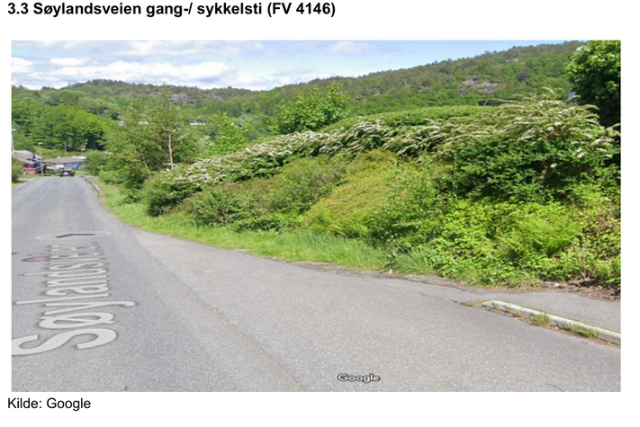 Strekningen gjelder fra Lossvollen til Søylandsveien. Her kan det også være mulig å søke støtte fra Statens vegvesen via fylkeskommunen for tiltak som gir bedre tilkomst til hjertesoner og trygg skolevei.