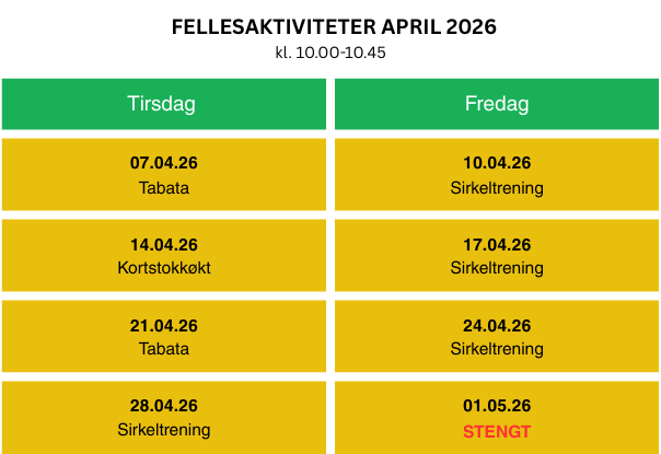Kl. 10-10.45. Styrke-/kondisjonstrening med fysioterapeut i gruppe.