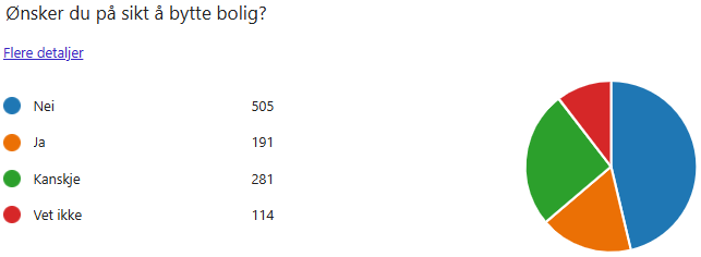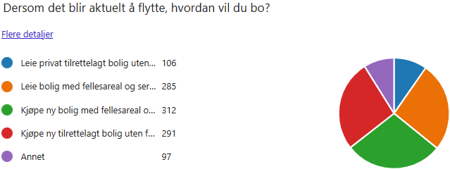 46,3% svarer at de på sikt ikke ønsker å bytte bolig, men vil bo hjemme.Flere nevner behov for: